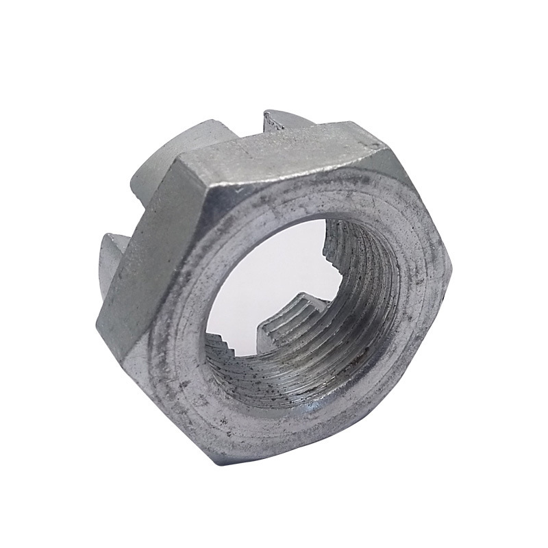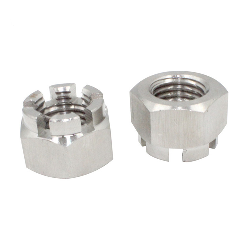 গম্বুজ অংশে বেশ কয়েকটি স্লট রয়েছে (সাধারণত ছয়), যা সমানভাবে বিতরণ করা হয় এবং বাদামের অক্ষের সাথে সরাসরি প্রসারিত হয়। এই স্লটগুলি সুনির্দিষ্টভাবে মেশিনযুক্ত এবং স্ট্যান্ডার্ড ওপেন পিনের সাথে পুরোপুরি মেলে। এই স্লটেড বৃত্তাকার মাথা বাদামের নকশা ব্যবহারিক এবং সুরক্ষা-ভিত্তিক উভয়ই: একবার আপনি বাদামটি শক্ত করে ফেললে এটি জায়গায় স্থির করা যেতে পারে, এইভাবে কম্পন বা অন্যান্য বাহিনীর কারণে এটি বল্ট থেকে পড়ে যাওয়া থেকে বিরত থাকে।