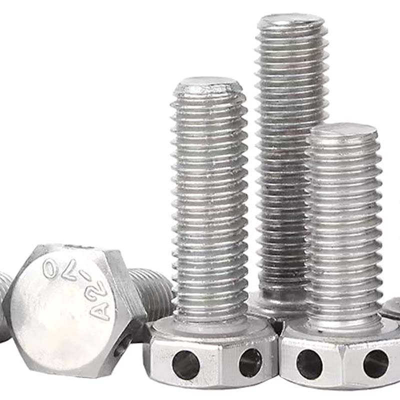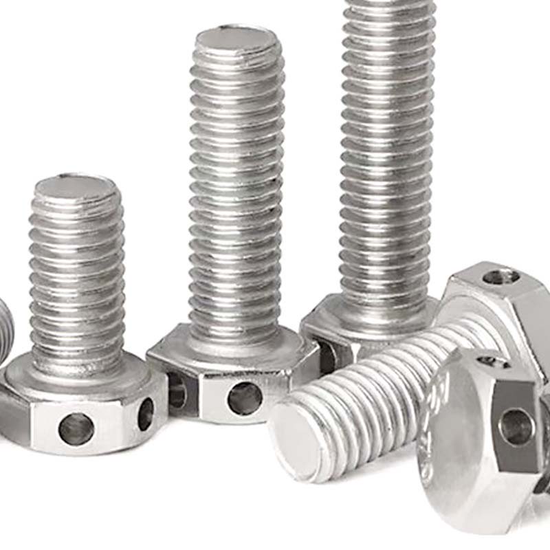 তারের গর্তের সাথে ষড়ভুজ মাথা বোল্টউচ্চ-প্রাণবন্ত পরিবেশে বোল্টগুলি শক্ত থাকে এমন সমস্যার সমাধান করেছেন। সংলগ্ন বল্টের গর্তগুলির মধ্য দিয়ে ইস্পাত তারের পাশ দিয়ে, বল্টগুলি আলগা থেকে রোধ করতে একটি "লক" তৈরি করা যেতে পারে। এটি বিশেষ অ্যান্টি-লুজিং বাদাম বা আঠালো ব্যবহার করার চেয়ে সস্তা এবং সহজ। এগুলি সাইকেলের অংশগুলি, বিমান প্যানেল বা ইঞ্জিন উপাদানগুলি ঠিক করতে ব্যবহৃত হয় যা ঘন ঘন কাঁপায়।