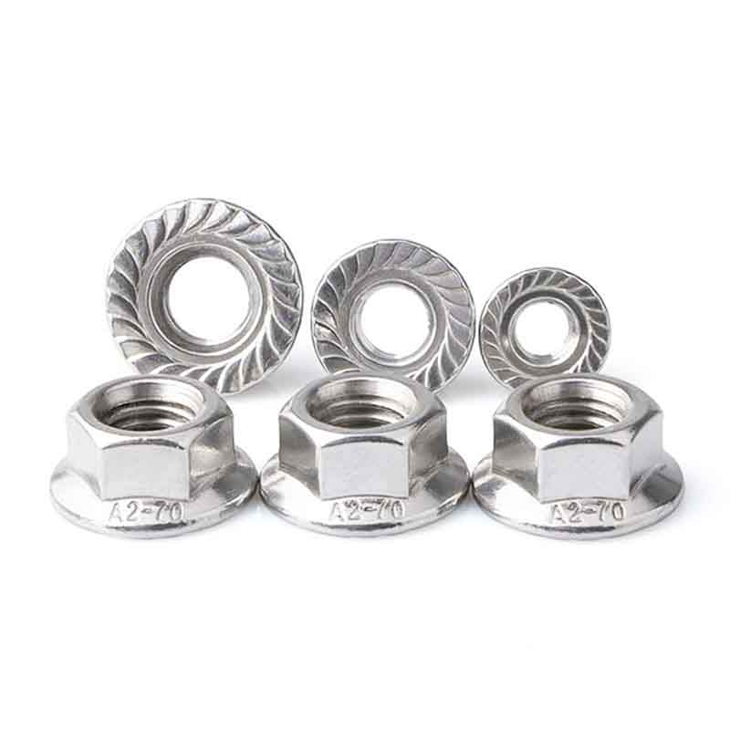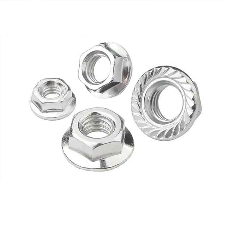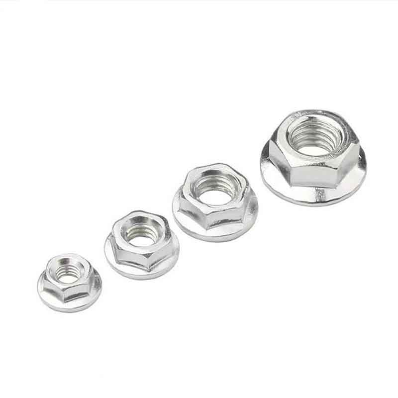 ফ্ল্যাঞ্জ সহ উচ্চ দক্ষতার ষড়ভুজ বাদাম সাধারণ আন্তর্জাতিক মান অনুসরণ করে যা তাদের সঠিক আকার এবং যান্ত্রিক বৈশিষ্ট্যগুলি সেট করে। প্রধান মানগুলির মধ্যে রয়েছে ISO 4161 (ব্যবহৃত হত DIN 6926) এবং ASME B18.2.2। মাপ ফ্ল্যাট জুড়ে হেক্স প্রস্থ (AF), মোট উচ্চতা, ফ্ল্যাঞ্জ ব্যাস এবং থ্রেডের আকার/পিচ (যেমন M12x1.75) এর মতো জিনিসগুলিকে কভার করে। ফ্ল্যাঞ্জের ব্যাস হেক্স অংশের চেয়ে বড়, যে কারণে এটি লোড ছড়িয়ে দিতে সাহায্য করে। এগুলি সাধারণ মেট্রিক এবং ইম্পেরিয়াল থ্রেড আকারে আসে, সাধারণত M5/M6 থেকে M36 পর্যন্ত, বা 1/4" 1.5 পর্যন্ত", তাই তারা বিভিন্ন প্রকৌশল প্রয়োজনের জন্য কাজ করে।