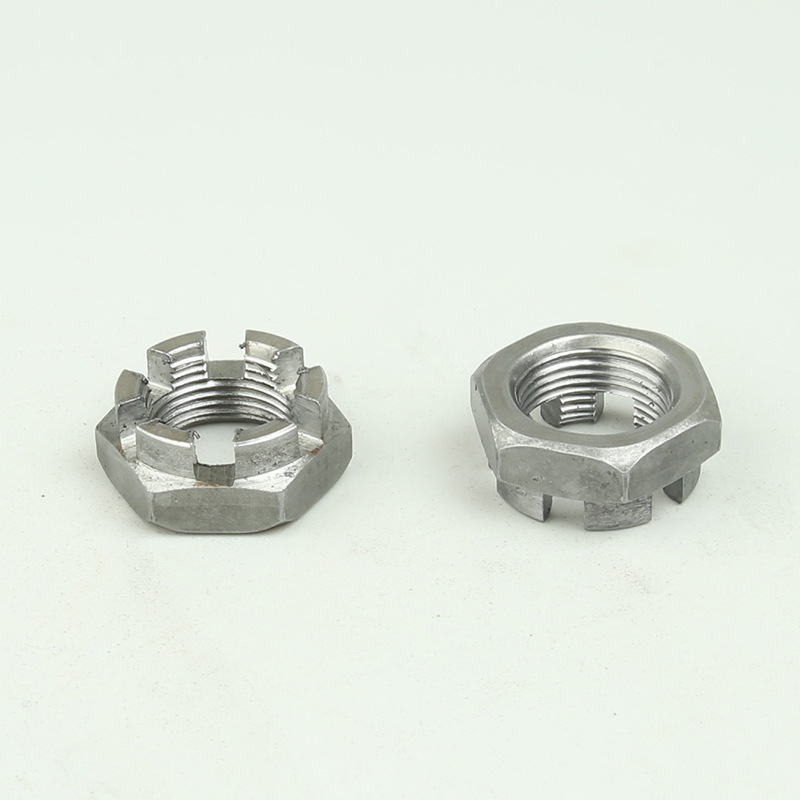 স্লট সহ এই ধরণের উদ্ভাবনীভাবে ডিজাইন করা মুকুট বাদামের সাধারণত একটি প্রাকৃতিক ধাতব পৃষ্ঠের চিকিত্সার প্রভাব থাকে যেমন সাধারণ কার্বন ইস্পাত বা স্টেইনলেস স্টিল।