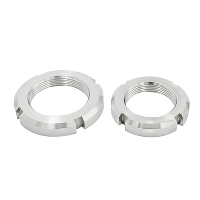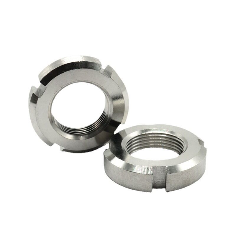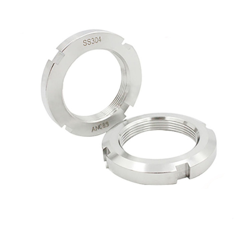 নির্মাণ শিল্প কাঠামোগত ইস্পাত সংযোগ এবং ভারা জন্য নিরাপদ লকিং স্লটেড লকিং রাউন্ড নাট ব্যবহার করে - নিরাপত্তা প্রাথমিক বিবেচনা। এই বাদামগুলি সাধারণত বড় ব্যাসের হয় এবং উচ্চ-শক্তির ইস্পাত দিয়ে তৈরি।