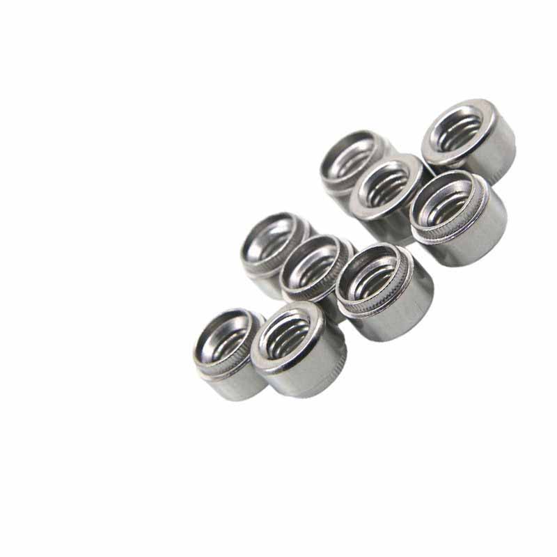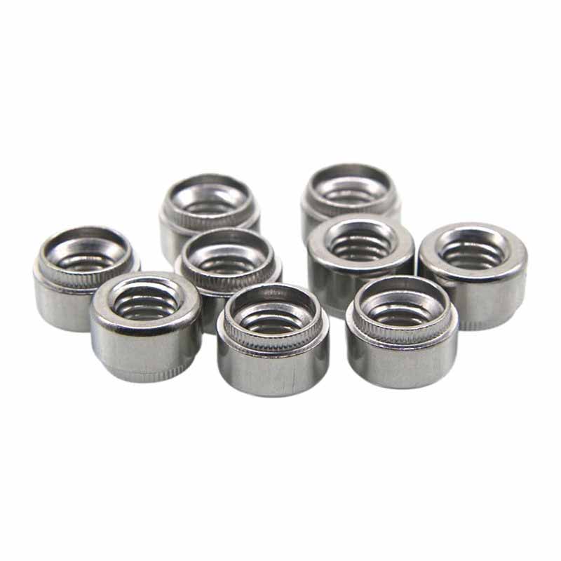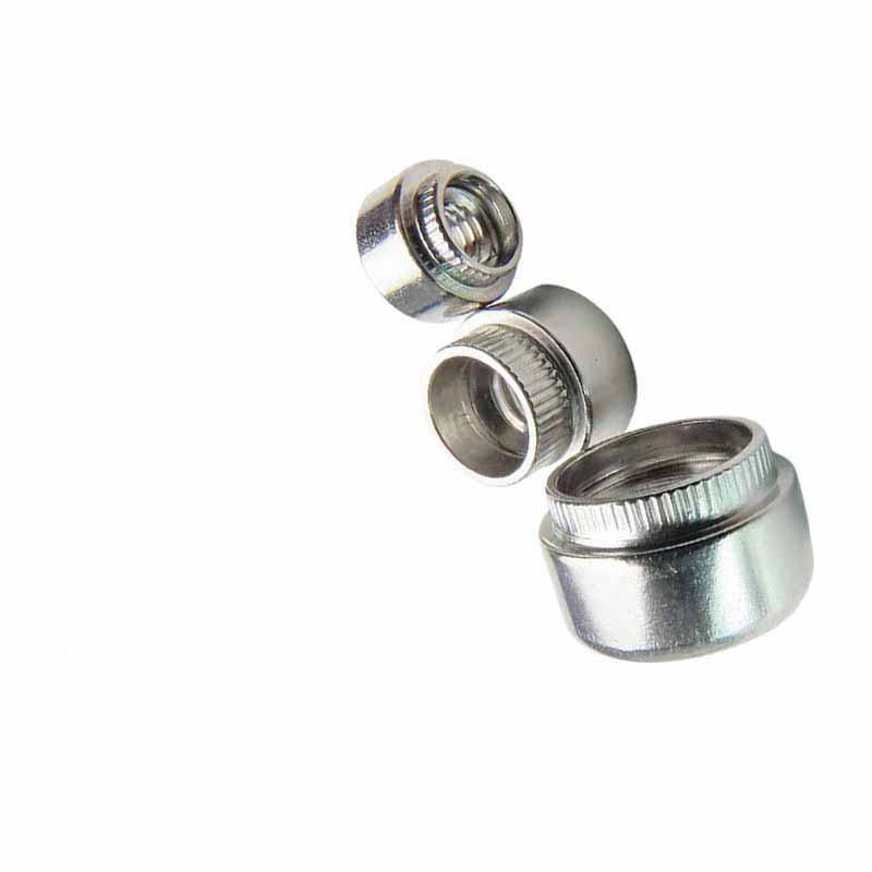 এই স্টেইনলেস স্টিলের স্ব-ক্লিঞ্চিং রাউন্ড রিভেট বুশ স্থায়ী, কম্পন-প্রুফ বেঁধে দেওয়ার জন্য তৈরি করা হয়েছে। এটি কীভাবে কাজ করে তা এখানে: আপনি নীচে প্রসারিত অংশটি একটি প্রাক-ড্রিল গর্তে আটকে দিন। আপনি যখন এটি ইনস্টল করেন, সাধারণত একটি রিভেট বন্দুক বা একটি প্রেস দিয়ে, এই অংশটি পিছনের দিকে (আপনি যে পাশটি দেখতে পাচ্ছেন না) এবং একটি শক্ত যান্ত্রিক লক তৈরি করে বুলস আউট করে। একই সময়ে, বাদামের উপর ফ্ল্যাঞ্জ এবং নুরলিং পৃষ্ঠটি আঁকড়ে ধরে চাপটি ছড়িয়ে দেয় যখন আপনি এটি শক্ত করে দেন।