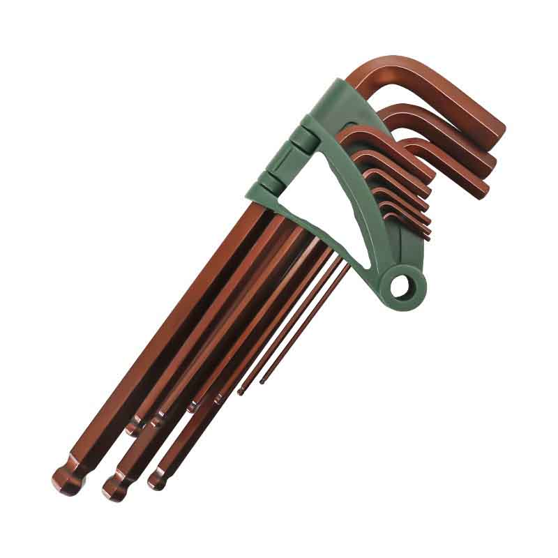 স্ট্যান্ডার্ড হেক্সাগন সকেট স্ক্রু কীগুলি শক্তিশালী করা হয়। তারা শক্ত অ্যালো স্টিল দিয়ে শুরু করে এবং তাপ চিকিত্সার মধ্য দিয়ে যায়, এটাই তাদের শেষ করে তোলে। শক্ত হেক্স অংশটি সহজেই পরিধান করে না বা এর কোণগুলি গোল হয়ে যায় না এবং টিপটি তীক্ষ্ণ থাকে।