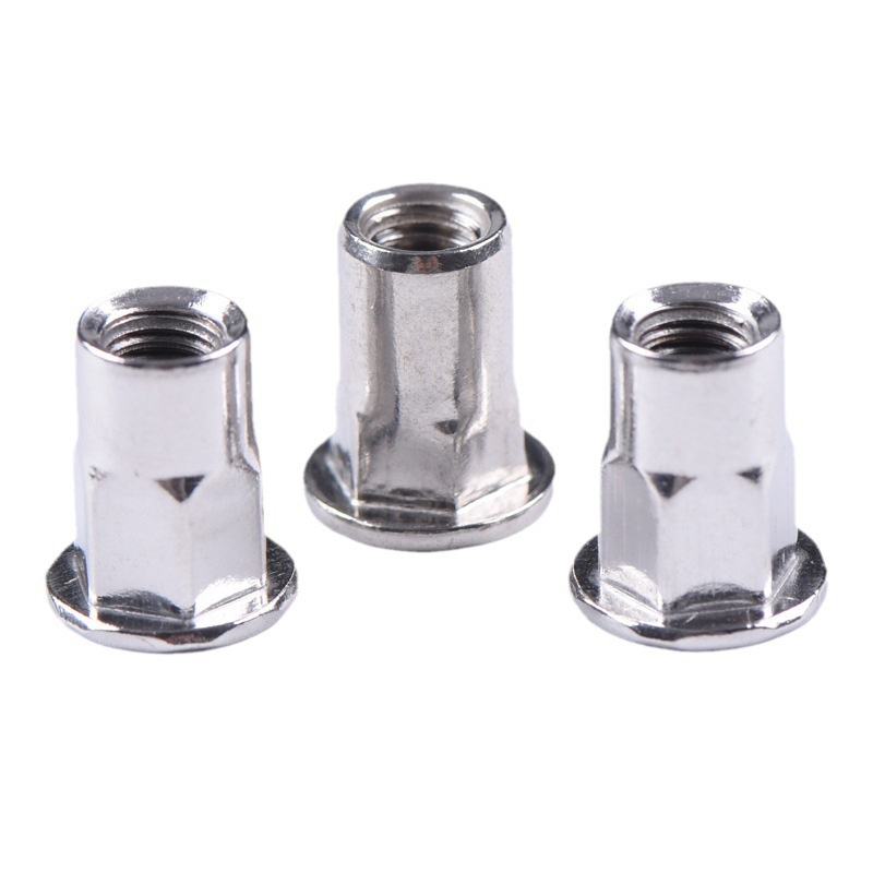 বহুমুখী হেক্স রিভেট নাটের একটি ষড়ভুজাকার দেহ রয়েছে। বৃত্তাকারগুলি থেকে ভিন্ন, এই আকৃতিটি এটি ইনস্টল করার পরে এটিকে ঘুরতে বাধা দেয়। এটি এর ডিজাইনের একটি মূল অংশ—এটি ষড়ভুজ ছিদ্রের সাথে মানানসই করার জন্য তৈরি করা হয়েছে। এইভাবে, আপনি যখন স্ক্রুটি শক্ত করছেন, তখন বাদামটি এটির সাথে ঘুরবে না। সম্পূর্ণ ষড়ভুজ এবং আধা-ষড়ভুজ শৈলীর মতো বিভিন্ন প্রকার উপলব্ধ রয়েছে। মাথাগুলি ফ্ল্যাট হেড এবং ছোট কাউন্টারসাঙ্ক হেডের মতো বিকল্পগুলিতেও আসে। আপনি যেটি আপনার প্রয়োজনের সাথে মানানসই বাছাই করতে পারেন, আপনি এটি উপাদানের সাথে ফ্লাশ করতে চান বা ইনস্টলেশনের পরে সামান্য প্রক্ষেপণ করতে চান।